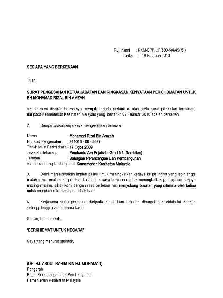 Format Surat Pengesahan Majikan Tempoh Pengalaman Contoh Pdf